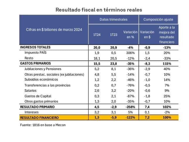 Pondera 1816 el importante ajuste fiscal que aplica el gobierno de Javier Milei y los resultados fiscales, tanto primarios como secundarios, logrados en el primer trimestre del año, pero advierte sobre los cambios profundos que el gobierno deberá aplicar desde mayo para que los equilibrios puedan consolidarse.