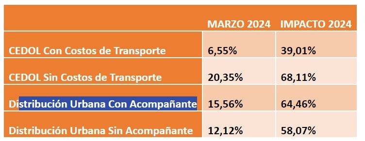 Otro informe, que elabora la Cámara Empresaria de Operadores Logísticos (Cedol) junto a la Universidad Tecnológica Nacional (UTN) muestra el Índice de Costos Logísticos Nacionales también para el mes de marzo 2024.