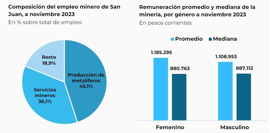 Santa Cruz es la provincia con salarios más altos. En noviembre el promedio era de 1,4 millones de pesos. En San Juan el promedio era de 1,12 millones de pesos y por eso “un empleado minero en la provincia ganó en promedio 2,1 veces más que el promedio de los salarios del sector privado registrado (SPR) nacional”.