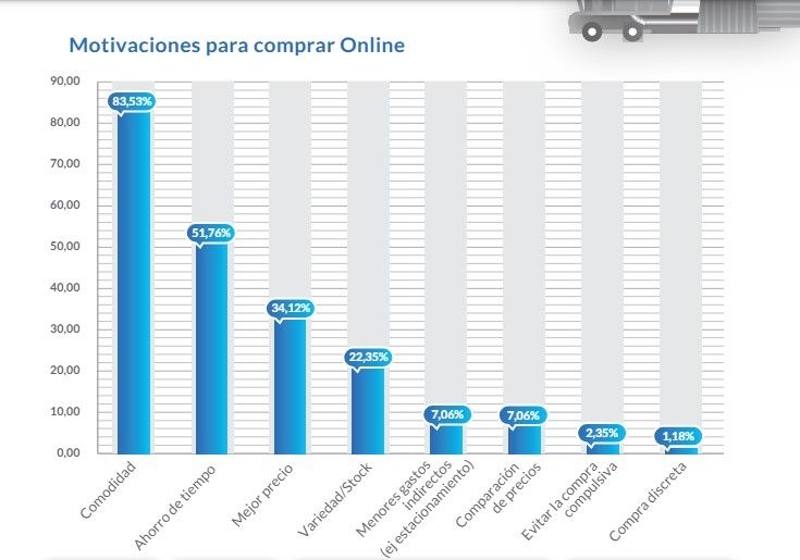 El relevamiento del IDC también consultó acerca de las razones por las que compran mediante plataformas online, indicando que lo hacen por comodidad en un 83,53% de los casos, ahorro de tiempo en un 51,76% y porque obtienen mejores precios por esta vía de compra en un 34,12% de las respuestas.