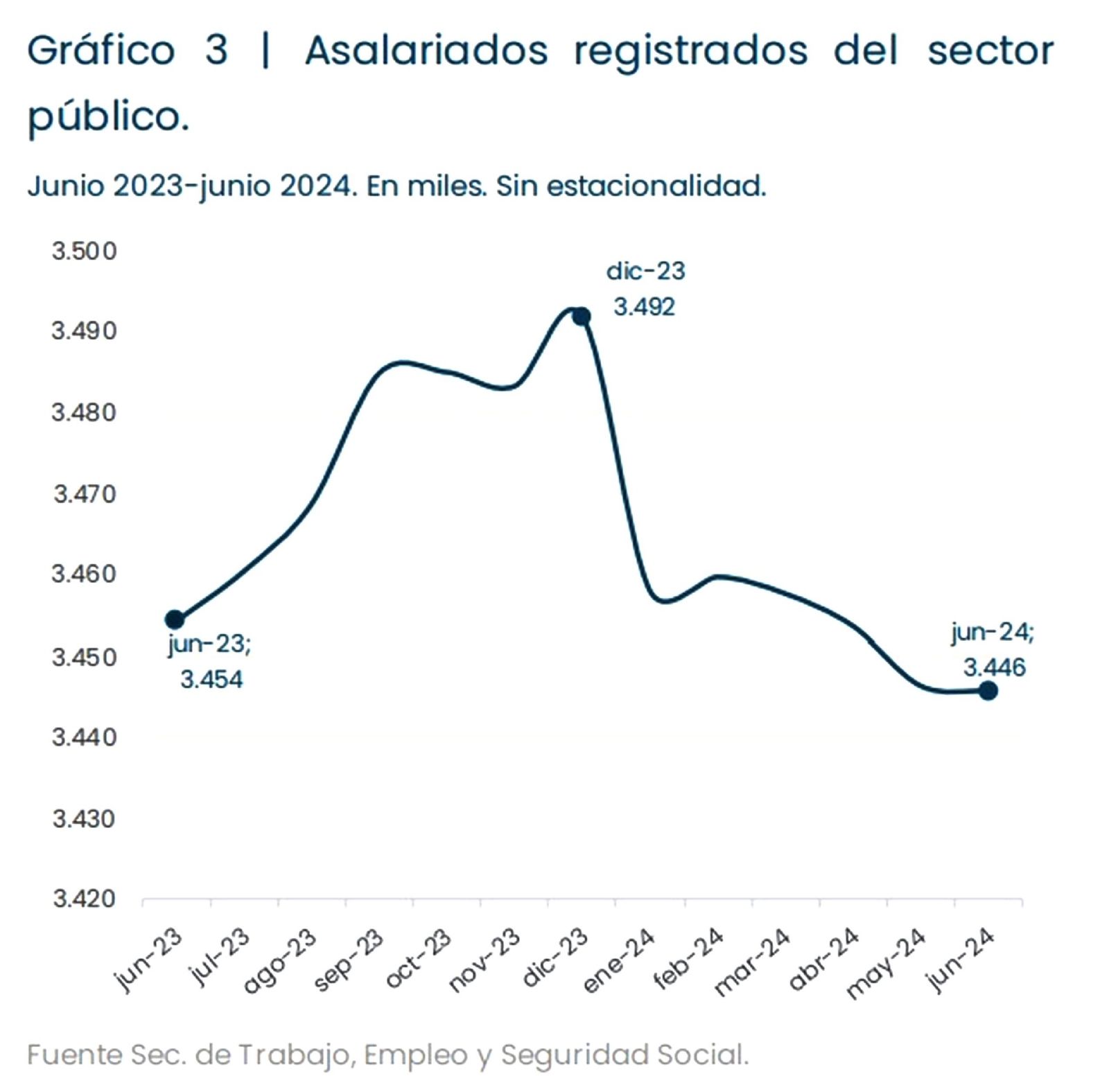 Los investigadores consignan que este retroceso ubica al número de asalariados formales en un valor similar al observado hacia fines de 2022 y es inferior a todos los valores mensuales de 2023.