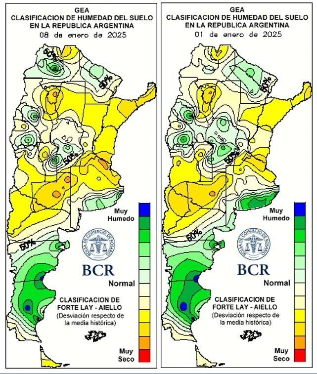 Además de estos incentivos, el ciclo de siembra 2024/2025 prometía una campaña excepcional en cuanto a los volúmenes de producción. Puntualmente si se habla de maíz, el 20% de las plantaciones estaban en excelente estado, mientras que el 65% tenían un muy buen nivel. Pero esta tendencia positiva se vio afectada por la falta de lluvias en la región núcleo.