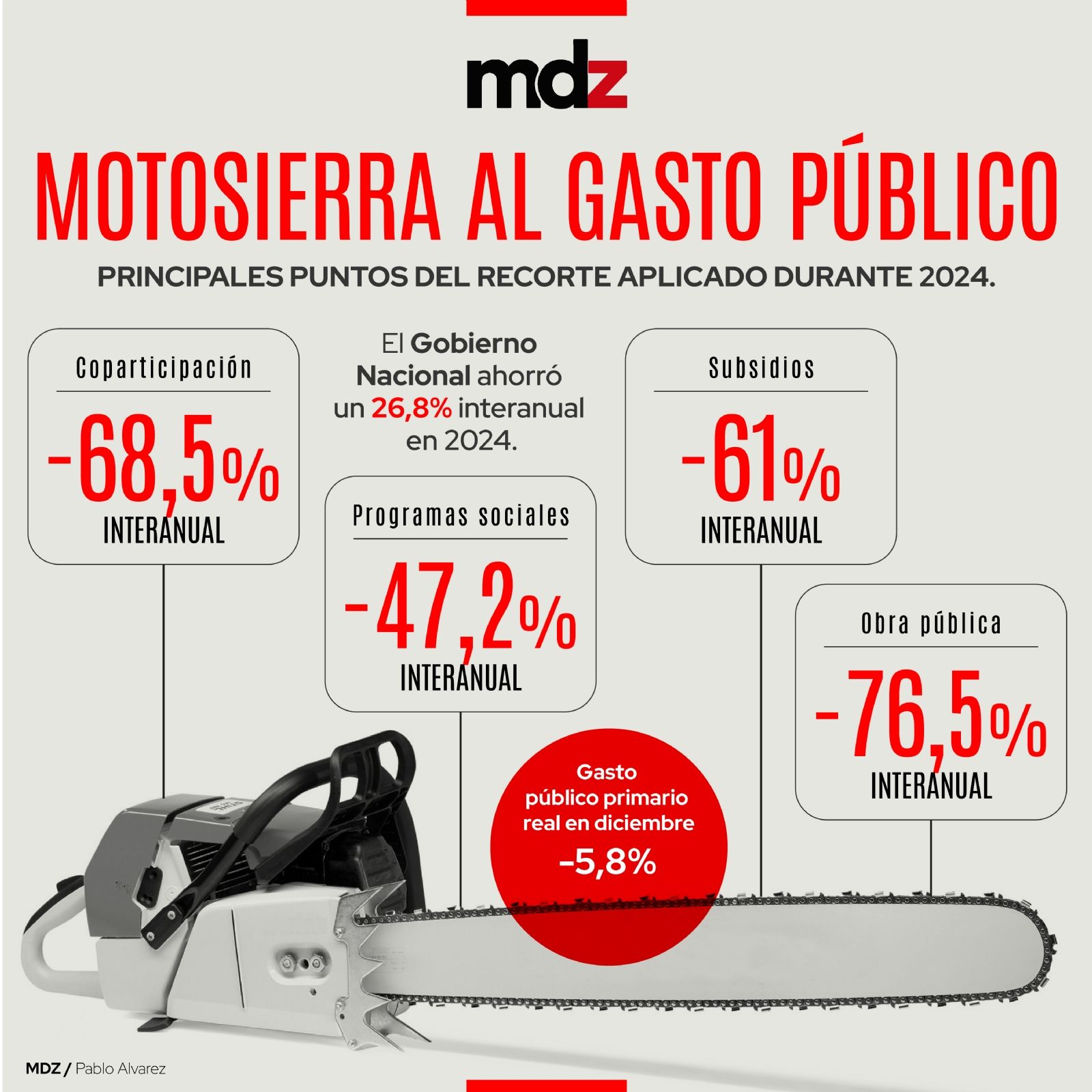 Caída récord del gasto público: el Gobierno ahorró un 26,8% interanual en 2024