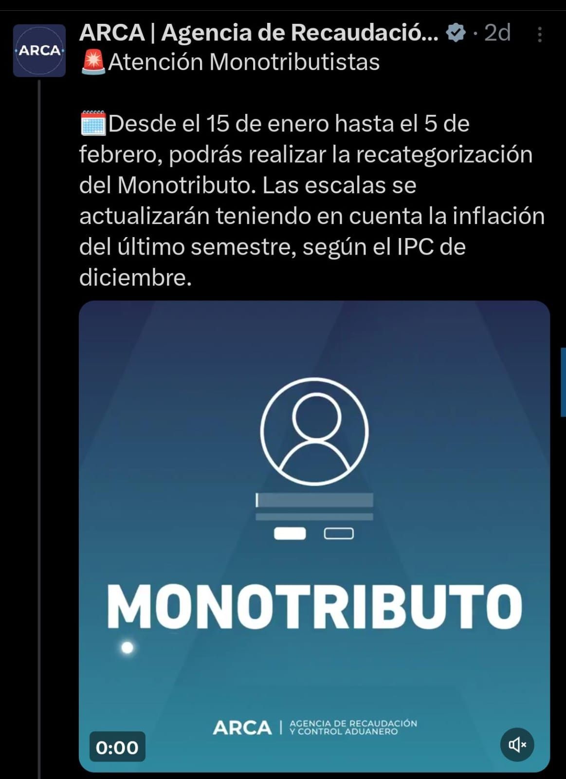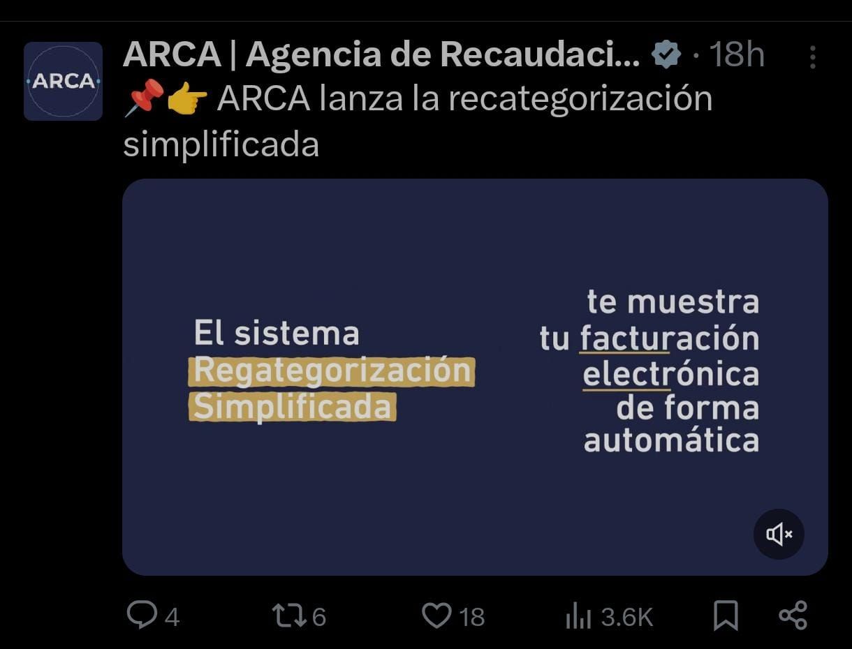 La Agencia de Recaudación y Control Aduanero (ARCA), informó a través de sus redes que la habilitación del trámite para realizar la recategorización según los nuevos montos de facturación anual. Si bien aquellos inscriptos dentro de este sistema de tributación tendrán tiempo hasta el 5 de febrero para completar la gestión, ya se encuentra abierta la instancia dentro de la página web de la entidad.