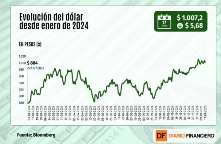 El gráfico de Diario Financiero con el comportamiento del dólar en Chile durante el 2024