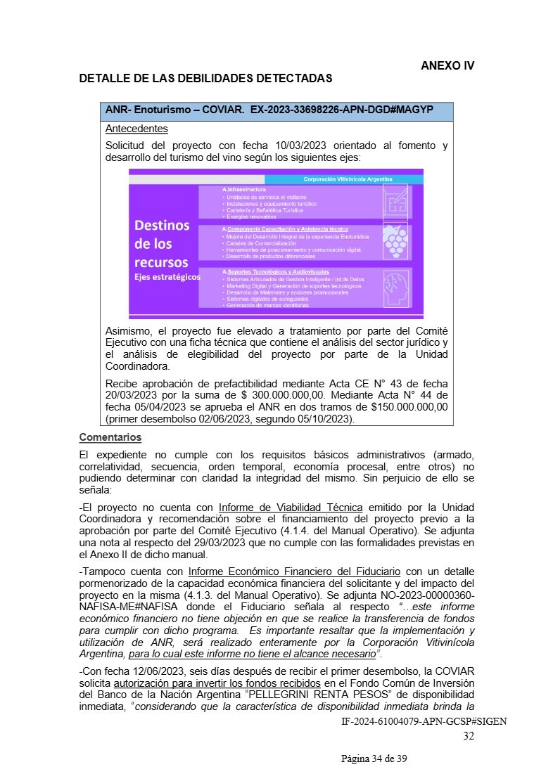 Otro de los puntos señalados por la Sigen es que en julio de 2023 la Coviar solicitó otros $300 millones argumentando el éxito del programa, lo cual fue aprobado aún sin la rendición del primer tramo. Sin embargo, cabe aclarar que esos fondos finalmente nunca fueron asignados.