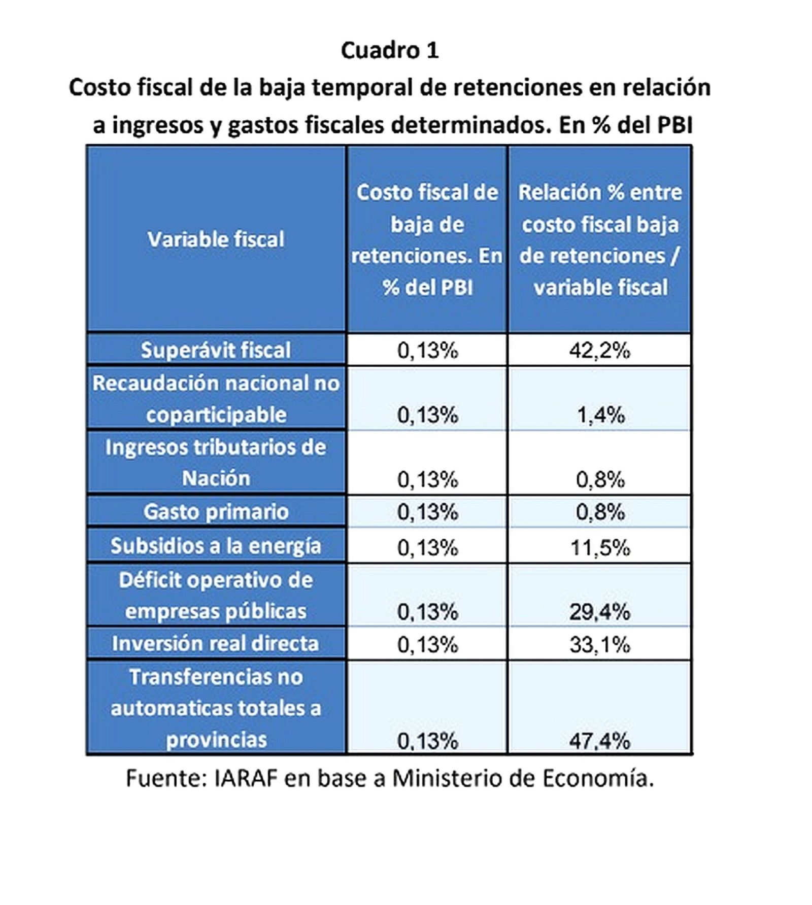 Según IARAF (Instituto Argentina de Análisis Fiscal), el costo fiscal de la decisión no se financiará con una sola vía. Y para mensurar la dimensión del costo señalaron el impacto que tendrían en las distintas cuentas públicas.