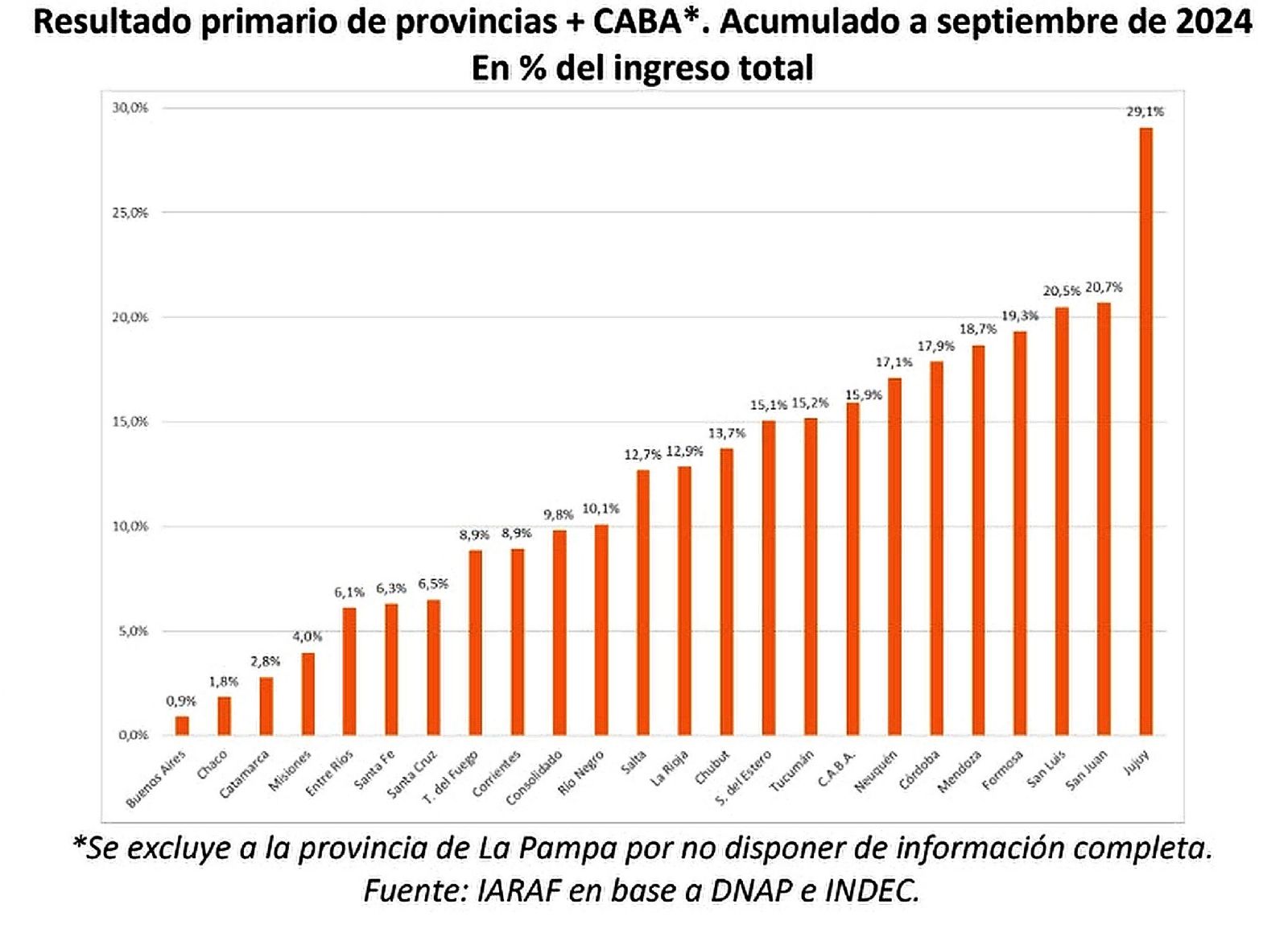 Más allá de las restricciones a las transferencias desde la Nación, todas las provincias de la Argentina cerraron el tercer trimestre del año 2024 con superávit fiscal primario. De esta manera, se sumaron a la iniciativa central del programa económico de Javier Milei, aunque con mucha disparidad entre jurisdicciones.