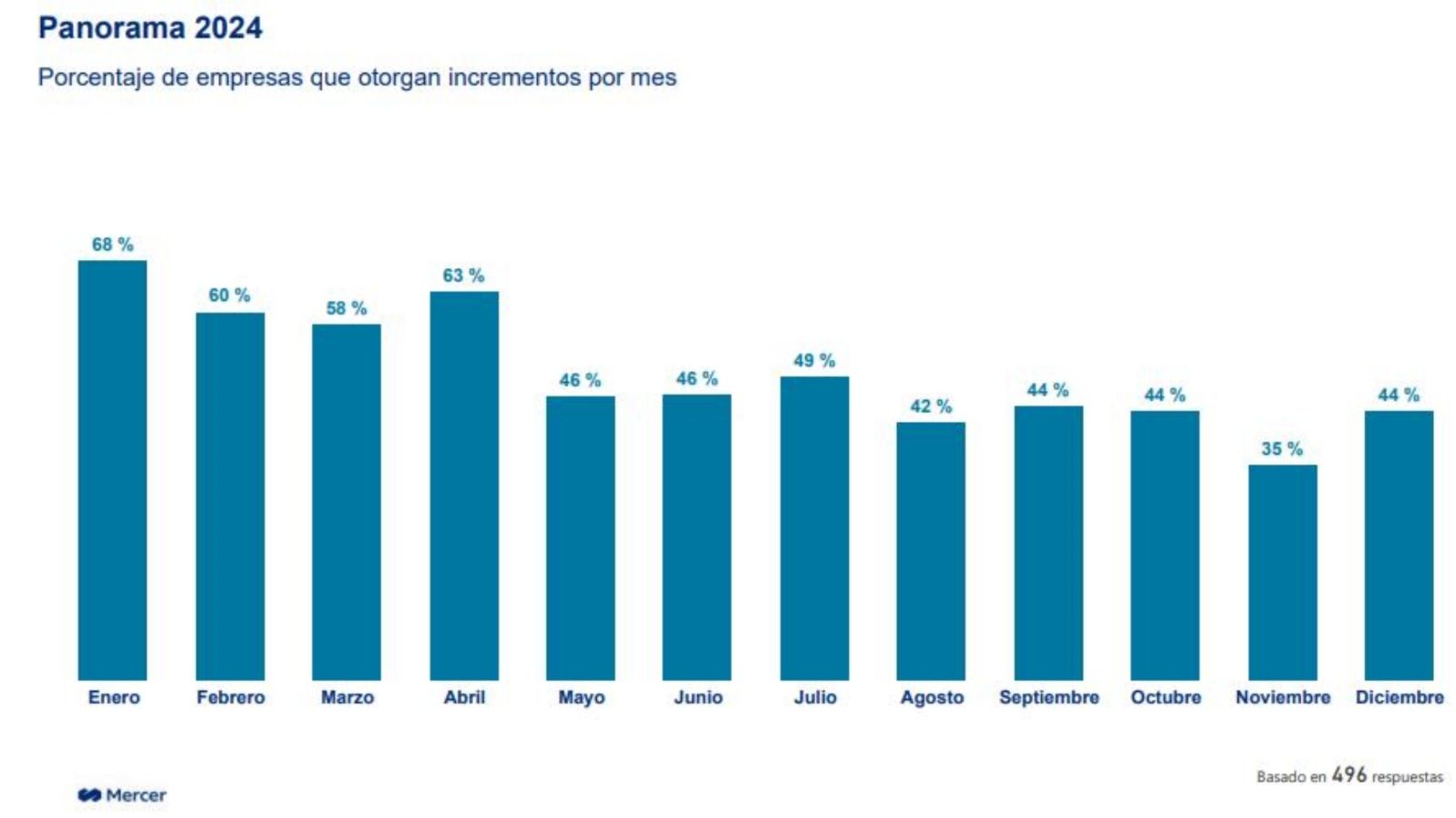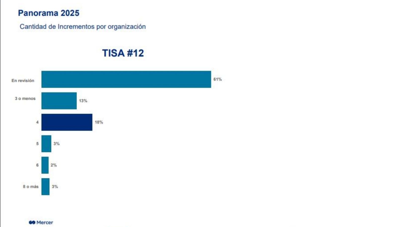 Según el informe de Mercer, solo un 38% de las compañías tiene un presupuesto definido para 2025, con una mediana de incremento salarial proyectada en un 45% para el mercado general. De las empresas con presupuesto definido o en evaluación, un 18% estima otorgar cuatro ajustes salariales durante el año próximo.