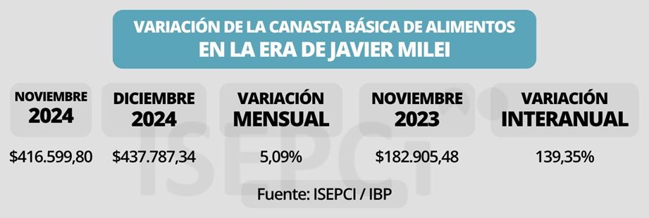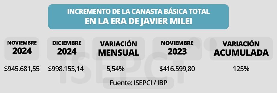 “La misma familia de cuatro integrantes necesitó para cubrir sus gastos de la Canasta Básica Total (CBT) $998.155,1, o sea, $52.473,59 (5,5%) más que un mes atrás", sostuvieron desde el ISEPCI respecto del límite para no caer en un nivel de pobreza.
