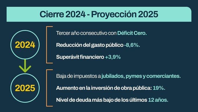 Anunció que en 2025 destinarán a la inversión en obra pública el 19% del total del presupuesto cuando durante los últimos 16 años de gestión el promedio fue del 16% y en el 2007 era del 7%.