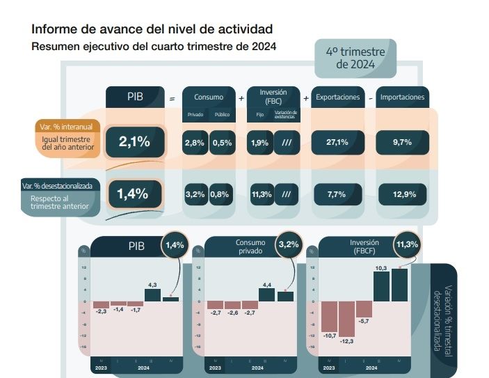 Crece la economía: la actividad tuvo una notable mejora en el cuatro trimestre de 2024