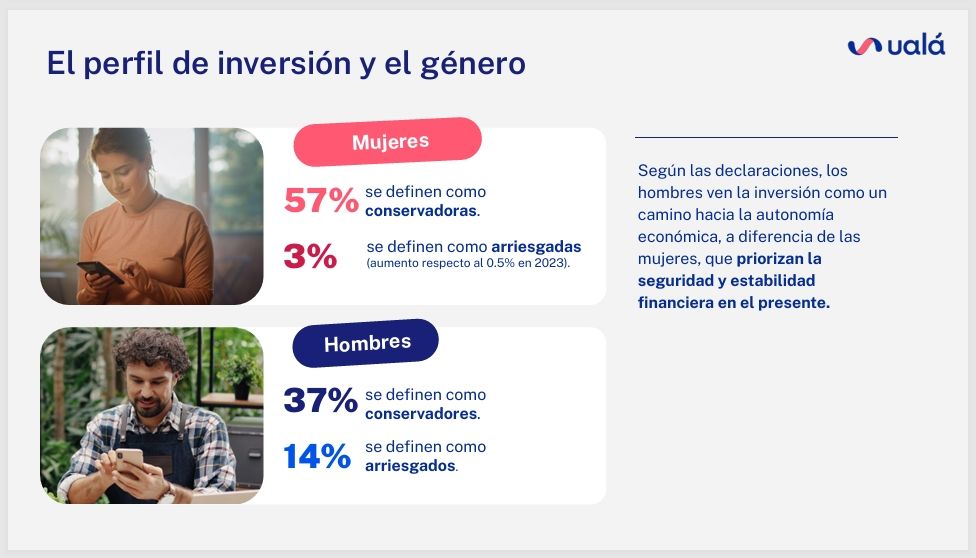 Sin embargo, una medición del mercado realizada por la fintech Ualá, reveló que cada vez son más las operadoras que toman opciones de inversión con mayor volatilidad. “De septiembre de 2023 a 2025, la cantidad de mujeres que se definen como inversoras arriesgadas creció del 0,5% al 3%”, remarcan los especialistas en su informe.