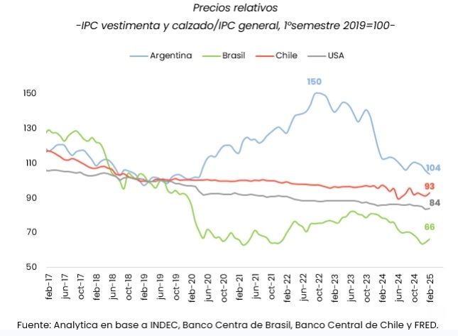 Si bien es cierto que en el último año los precios de indumentaria y calzado aumentaron por debajo del promedio general de la inflación, en los años previos habían registraro incrementos muy superiores. Este, plantean, es un comportamiento estrechamente vinculado a la evolución de la demanda. "En períodos de expansión del consumo y de aceleración inflacionaria, los precios relativos de la ropa tienden a aumentar con mayor intensidad", señalan.