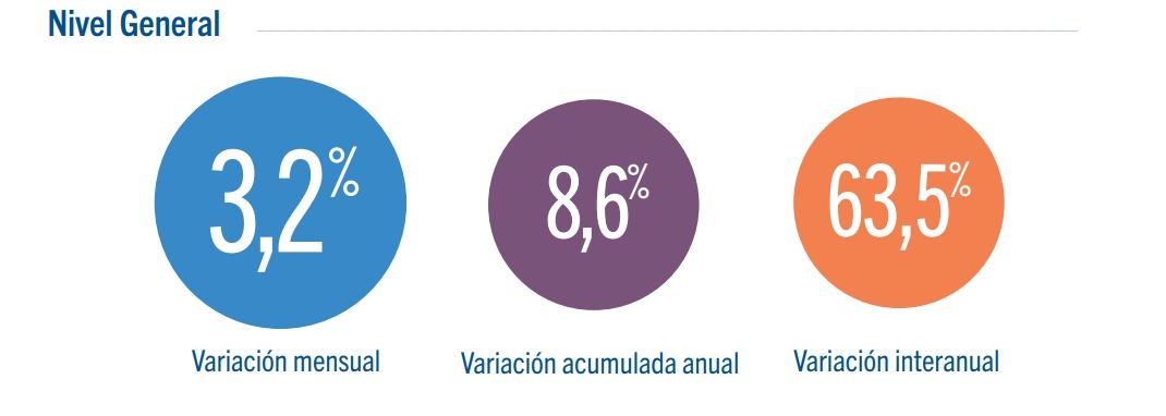 “En cuanto a los principales rubros, Educación, Alimentos y bebidas e Indumentaria encabezaron las subas del mes, registrando alzas mensuales de 5,4%, 4,9% y 4,0% respectivamente, seguidos por Transporte y comunicaciones y Vivienda que presentaron una variación de 2,5% y 1,9% respectivamente”, detalla el reporte.