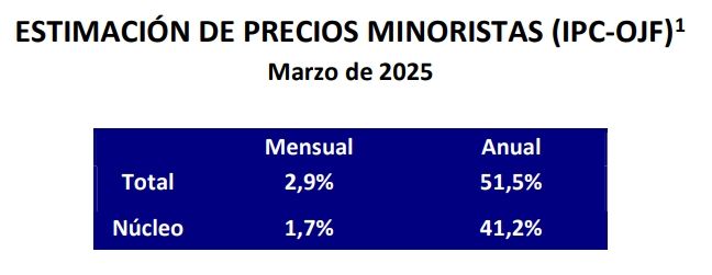 Para el Centro de Estudios Económicos de Orlando J Ferreres & Asociados, el panorama es más oscuro aún. Según su trabajo de análisis, la inflación de marzo será del 2,9% mensual. Esta estimación surge de un relevamiento diario de más de quince mil precios de bienes y servicios de GBA.