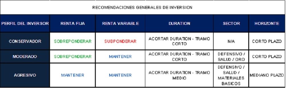 Para un inversor de mediano plazo con un view positivo en cuanto a la resolución del actual conflicto y dispuesto a tolerar escenarios de alta volatilidad, se presenta un escenario de precios atractivos en cuanto a activos de renta fija y variable.