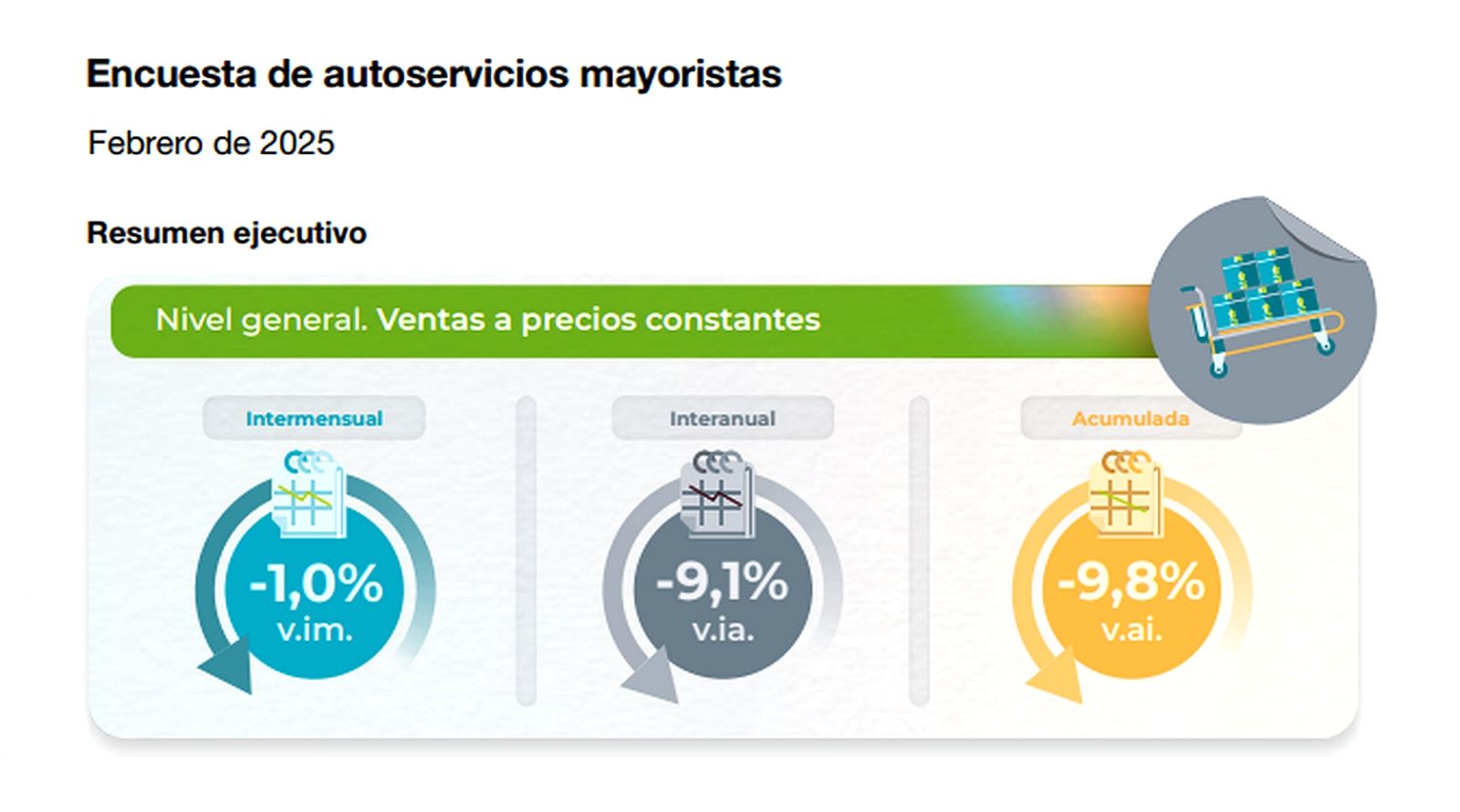 La baja muestra un debilitamiento de la incipiente recuperación que sostenían los supermercados, que habían mejorado un 4,1% interanual en enero. Los autoservicios mayoristas, en tanto, están en una crisis histórica con caídas constantes, en muchos periodos de dos cifras, en los últimos 14 meses.