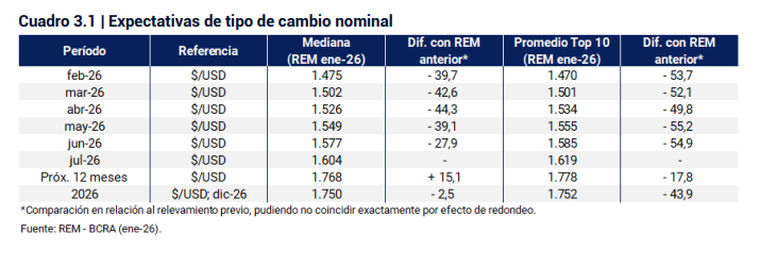 Los datos surgen del Relevamiento de Expectativas del Mercado (REM) de enero, difundido por el Banco Central (BCRA), realizado entre el 28 y el 30 de enero y abarcó las proyecciones de 45 participantes, entre 33 consultoras y centros de investigación locales e internacionales y 12 entidades financieras.