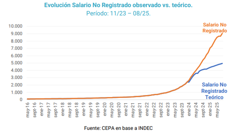 Un segundo cuestionamiento es sobre la medición de los ingresos del trabajo no registrado. Según los datos oficiales, este segmento mostró un crecimiento real del 25,5% entre fines de 2023 y septiembre de 2025, es decir 25,5 puntos más que la evolución de la inflación. Todo un logro en un contexto de salarios a la baja y despidos en la mayor parte de los sectores de la economía y en el Estado.