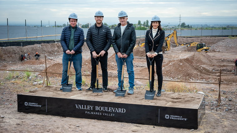 Inmerso en el predio de Palmares Valley, el grupo mendocino hincó la pala en el terreno en el que en un plazo de 36 meses se levantará Valley Boulevard, un desarrollo de 16.400 m2 de oficinas y tiendas (que aumenta a 20.000 m2 con estacionamientos y otros espacios). En total, en sus más de 200 hectáreas, el distrito integra arquitectura contemporánea, viñedos, deporte, comercio y vida cotidiana, con una proyección de más de 10.000 residentes en los próximos años.