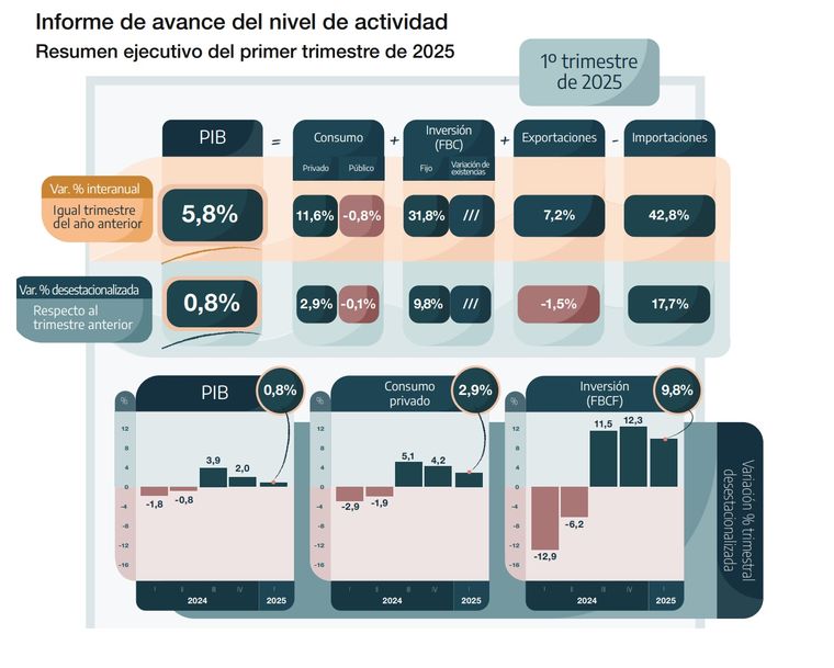 El PBI de la Argentina mejoró en los primeros meses del año casi un 6% interanual y un 0,8% respecto del trimestre anterior.