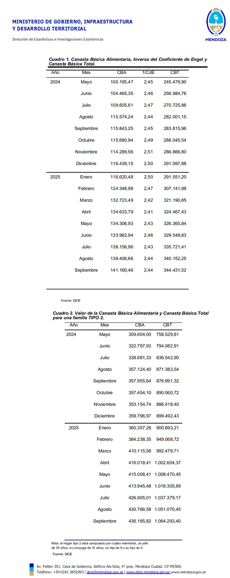 MILAGROS LOSTES - MDZEste martes, la Dirección de Estadísticas e Investigaciones Económicas (DEIE) dio a conocer el nuevo Índice de Precios al Consumidor (IPC) correspondiente al mes de septiembre en Mendoza. Junto con este dato, también aportó los nuevos valores en la medición de la Canasta Básica Total y la Canasta Básica Alimentaria.