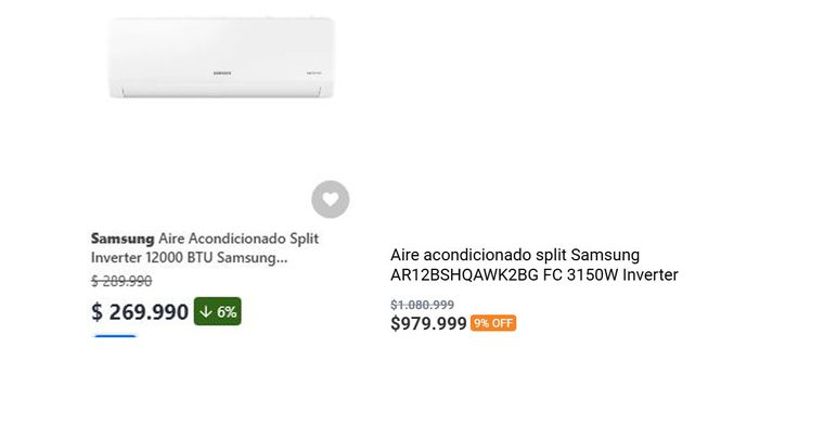 En el caso de los aires acondicionados, hay una diferencia de más de medio millón de pesos: en Chile cuesta 362.000 pesos argentinos (270.000 chilenos), cuando en Argentina promedia los 980.000 pesos.