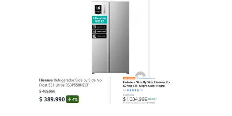 A la hora de comparar precios entre Argentina y Chile, las diferencias son significativas. En el caso de las heladeras, por ejemplo, una de 531 litros cuesta en Chile 389.990 chilenos, o aproximadamente 522.000 pesos argentinos. Mientras que un producto de similares características se consigue en Argentina por 1.600.000 pesos.