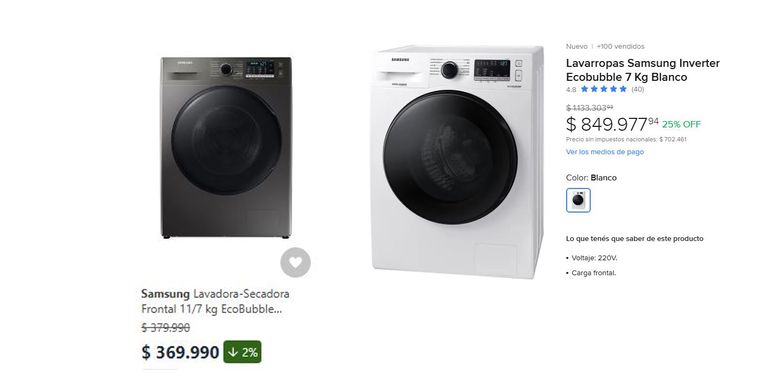 Continuando con los electrodomésticos de línea blanca, en Chile un lavarropas de 7 kilos está en 494.000 pesos argentinos (369.000 chilenos). Mientras que un producto idéntico, puede encontrarse en Argentina a 850.000 pesos.