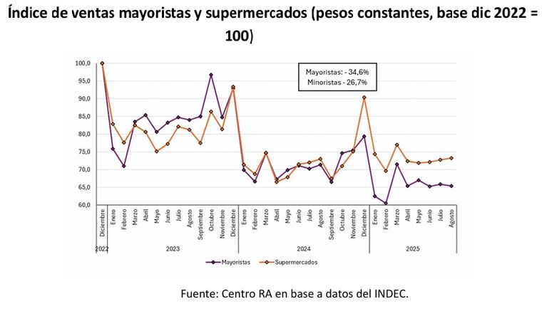 Los datos fueron relevados por el Centro RA, Estudios para la Recuperación Argentina, dependiente de la Facultad de Ciencias Económicas de la Universidad de Buenos Aires y corresponden a agosto de 2025.