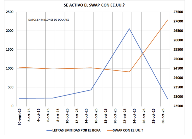 Y efectivamente así ocurrió. Fue una mezcla de apoyos de Donald Trump, de Scott Bessent, y las intervenciones del tesoro norteamericano en el mercado oficial. Las intervenciones fueron más importantes que los posteos del secretario del Tesoro de Estados Unidos y el presidente.