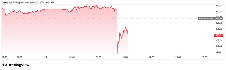 Petróleo Brent: El crudo de referencia europea descendió un 6%, logrando perforar hacia abajo la barrera psicológica de los 100 dólares.