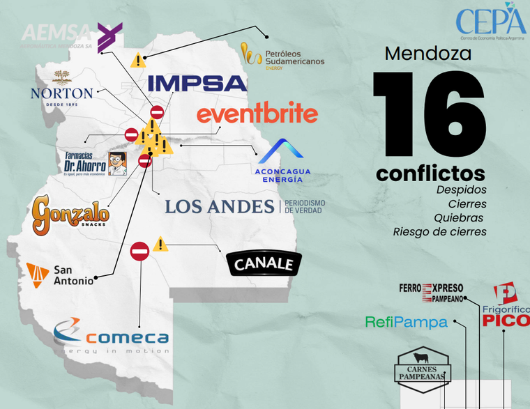 El listado elaborado por CEPA sobre las empresas que sufrieron complicaciones durante estos dos años incluyen algunas como Diario Los Andes, que luego de los despidos sufridos bajo la administración de Grupo Clarín y su pase a manos mendocinas ha logrado regularizar su situación, o como IMPSA, que ya reestructuró su deuda y volvió a competir en proyectos globales.
