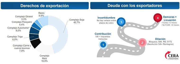 El caso paradigmático es el complejo sojero que paga 24% en el poroto y 22,5% en los subproductos; mientras que maíz y sorgo pagan 8,5%; trigo y cebada 7,5%; girasol 4,5%. También pagan la carne 5%, los autos y algunas autopartes 4,5%, y los productos pesqueros entre 5 y 9%, entre otros.