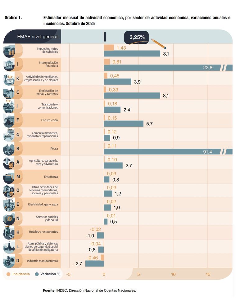Así, los datos de octubre confirman un escenario de crecimiento interanual, pero con señales de desaceleración en el corto plazo, marcado por la volatilidad mensual y una recuperación que aún no logra consolidarse de manera homogénea en todos los sectores de la economía.