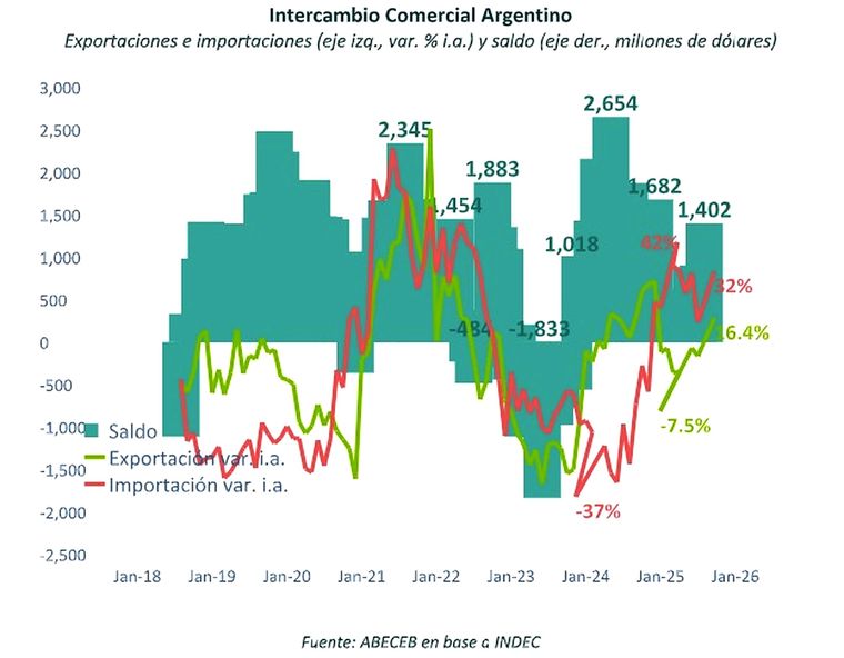 De acuerdo con los datos de Indec, las exportaciones crecieron un 16,4% interanual, mientras que las importaciones avanzaron un 32,4% frente al mismo período de 2024, lo que marca una fuerte mejora del comercio exterior en general, con un fuerte avance de las compras en el exterior.