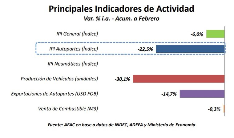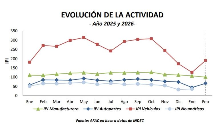 En un contexto de fuerte crisis de la industria y el consumo, la industria de autopartes argentina registró durante los primeros dos meses de 2026 una caída del 22,5% en su nivel de actividad respecto al mismo período de 2025, de acuerdo con datos difundidos por la AFAC. No obstante, en la comparación mensual, mostró una fuerte recuperación dn el mes de febrero frente a enero, con un incremento del 49,9%.
