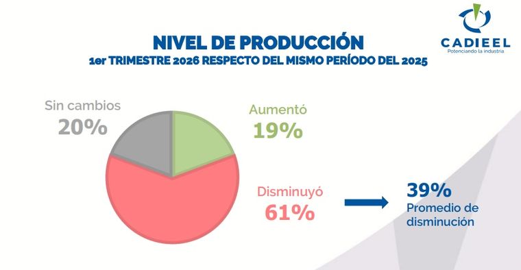 De acuerdo con el informe sectorial, el 61% de las empresas registró una disminución en su producción durante el período, con una contracción promedio del 39%. Apenas un 19% logró incrementar su nivel de actividad, mientras que el 20% restante se mantuvo sin cambios. Los datos reflejan un empeoramiento respecto del trimestre anterior.