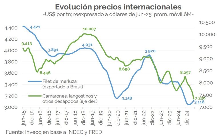 Según señalan los ingresos del sector fueron castigado por doble vía. Por un lado, recibieron un shock exógeno por la caída de los precios internacionales e interno por la baja del tipo de cambio. Por el otro, la fuerte caída del poder de compra interno que generó la baja de ventas tanto de la merluza como del langostino.