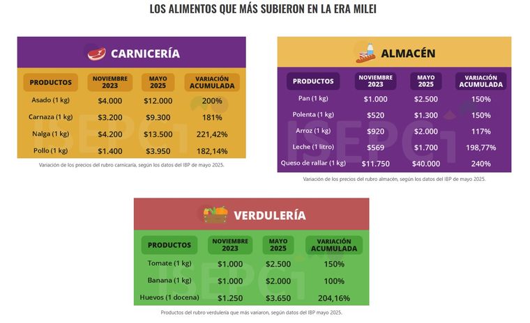 Desde que asumió el actual Gobierno, en diciembre de 2023, el salario subió 133,48%, la Canasta Básica de Alimentos 172,32% y la Canasta Básica Total 188,79%.