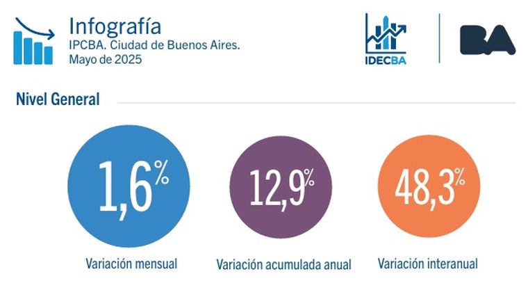 La inflación en la Ciudad Autónoma de Buenos Aires registró en mayo una baja sustantiva, ubicándose en 1,6%, siete décimas menos que el mes anterior, informó este lunes el Instituto de Estadística y Censos porteño. El dato se conoció en medio de la expectativa que genera la difusión de la inflación nacional esta semana.