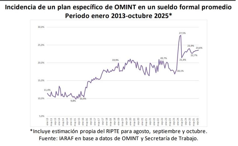 Tras el acuerdo con el Gobierno, la proporción bajó al 21,4% en mayo de 2024, pero volvió a aumentar en los meses siguientes. En octubre de 2025, el costo de la cobertura médica representa cerca del 24% del salario formal promedio.