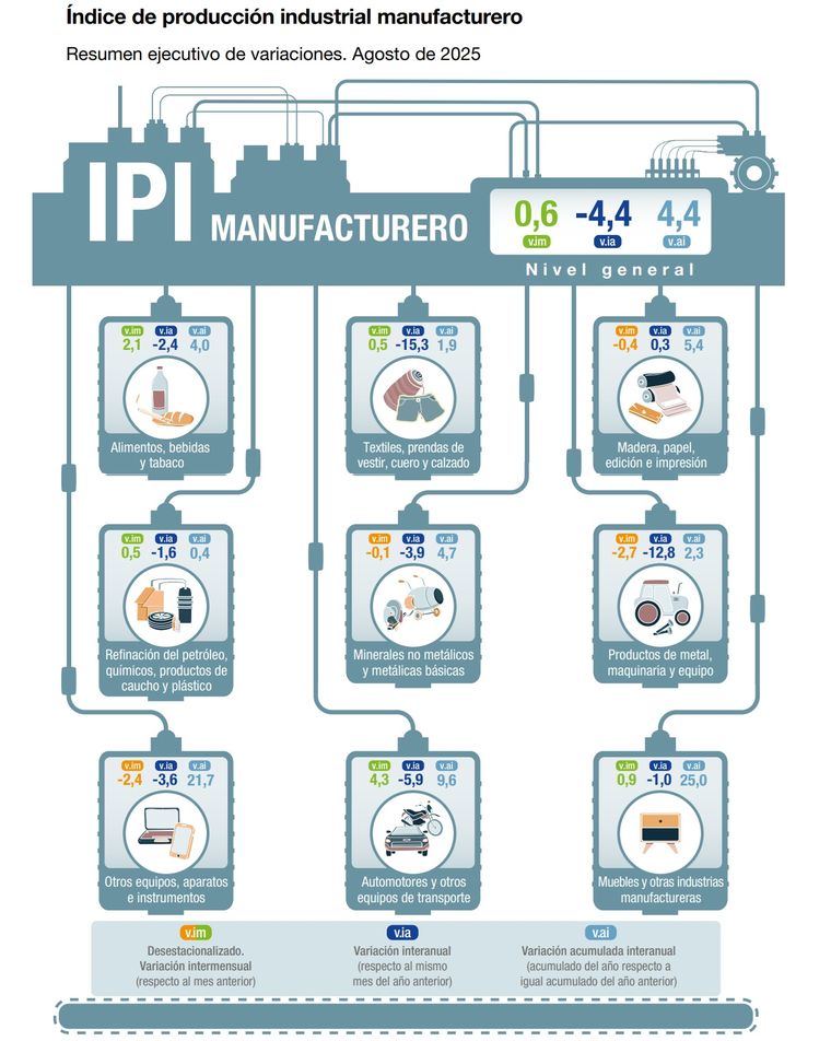 La producción industrial registró una caída del 4,4% en agosto