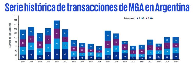 Las operaciones entre actores argentinos crecieron de 25 en el primer semestre a 32 en el segundo, con un valor total de US$ 3.750 millones. El informe también detecta un incipiente retorno del interés extranjero: cerca de la mitad de los inversores internacionales que participaron en 2025 lo hicieron por primera vez en el país, lo que podría anticipar un mayor flujo de capitales en los próximos años. A su vez, se observó una desaceleración en la salida de multinacionales, tendencia que venía marcando años anteriores.