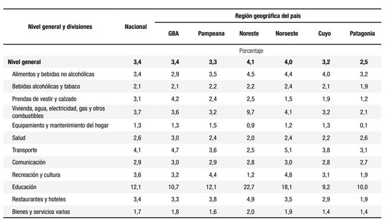 El IPC núcleo -que excluye precios estacionales y regulados- fue de 3,5% en el NEA, mientras que los precios estacionales, treparon al 1,5% en el Noreste.