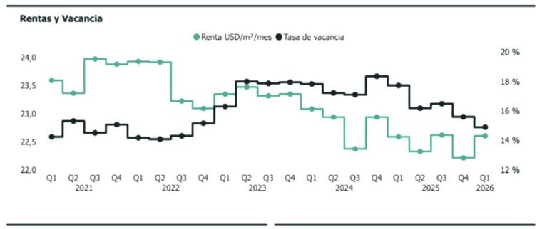 En términos de precios, el mercado se mantuvo estable. La renta promedio solicitada se ubicó en US$ 22,60 por m2, sin cambios significativos frente al trimestre anterior. Este comportamiento refleja un equilibrio entre una demanda que se sostiene y una oferta limitada.