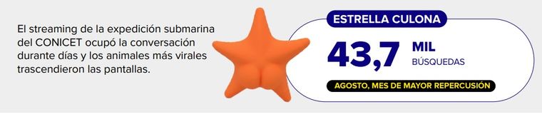 Uno de los datos más llamativos fue el de las búsquedas de elementos ligados a la ciencia. La expedición del Conicet al fondo del mar Argentino tuvo un fuerte impacto mediático lo que se trasladó a las búsquedas en la plataforma. Los argentinos buscaron 1,2 millones de veces la palabra telescopio y 1,1 millones microscopio, además de 305.000 búsquedas de juegos de ciencia y 43.000 de la famosa estrella de mar denominada popularmente como la "estrella culona".