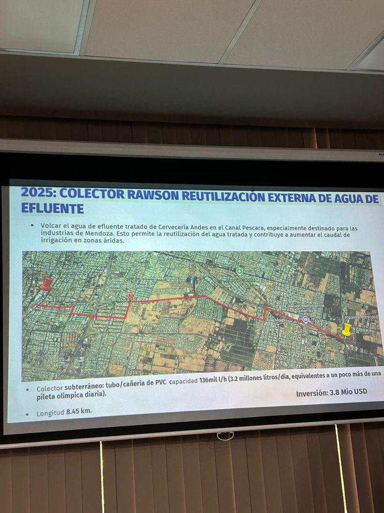 Con los primeros 200 metros en obra, inició el proceso de construcción de un colector subterráneo de 8,45 kilómetros por el trazado urbano de Godoy Cruz y Maipú que permitirá que la planta de Cervecería y Maltería Quilmes (mejor conocida como Andes) deje de volcar sus efluentes en el canal Cacique Guaymallén para pasar a verter toda el agua tratada en el canal Pescara, con una capacidad de 3,2 millones de litros al día, equivalentes a una pileta olímpica diaria. El mismo demandará una inversión de US$ 3,8 millones y estaría lista para 2027.