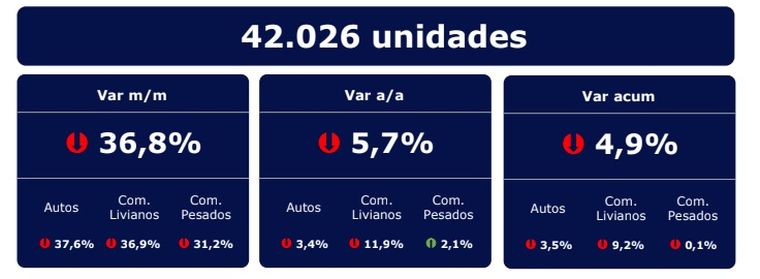 Lo más impactante, sin embargo, se evidenció en la comparación mensual. Frente a enero de este año, cuando se habían patentado 66.454 vehículos, el descenso fue del 36,8%. Con estos números, el patentamiento acumulado del primer bimestre de 2026 alcanza 108.480 unidades, lo que implica una baja del 4,9% respecto del mismo período del año pasado, cuando se habían registrado 114.086 vehículos.